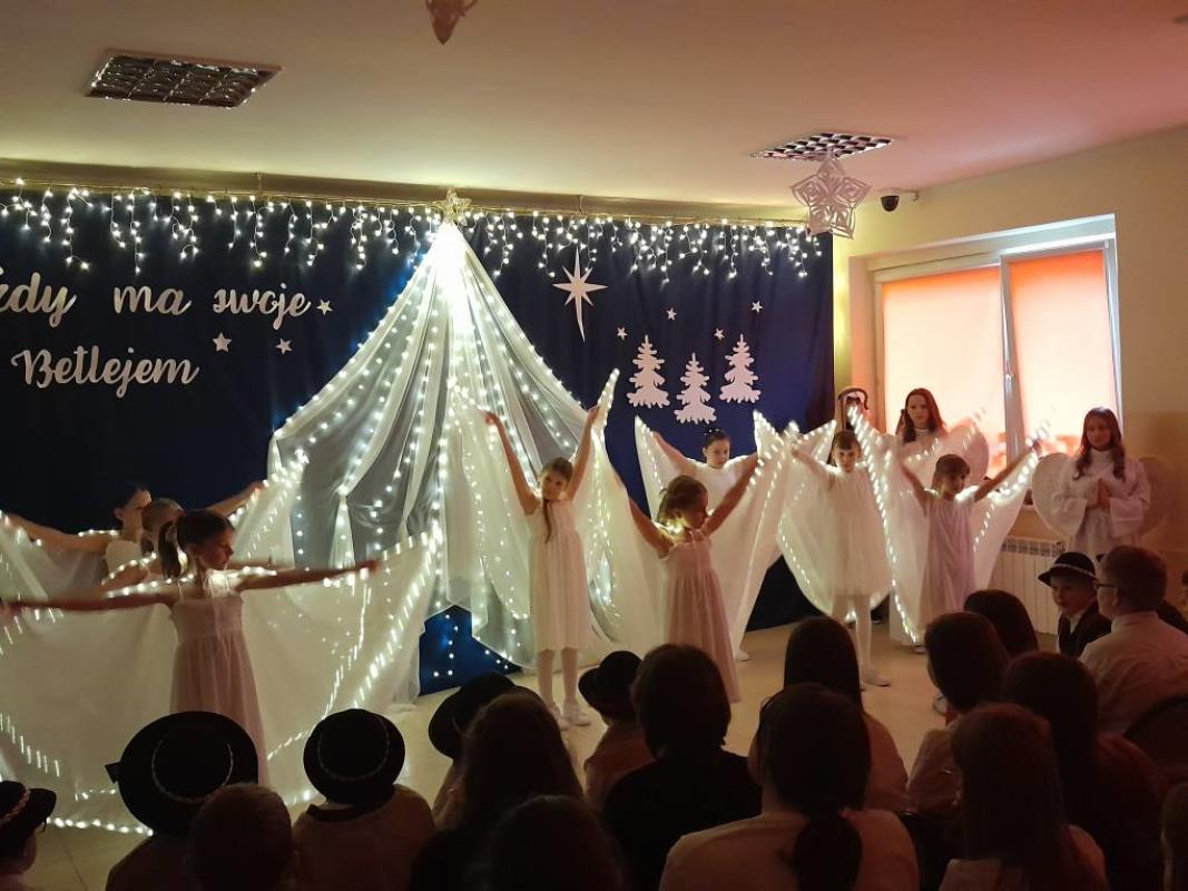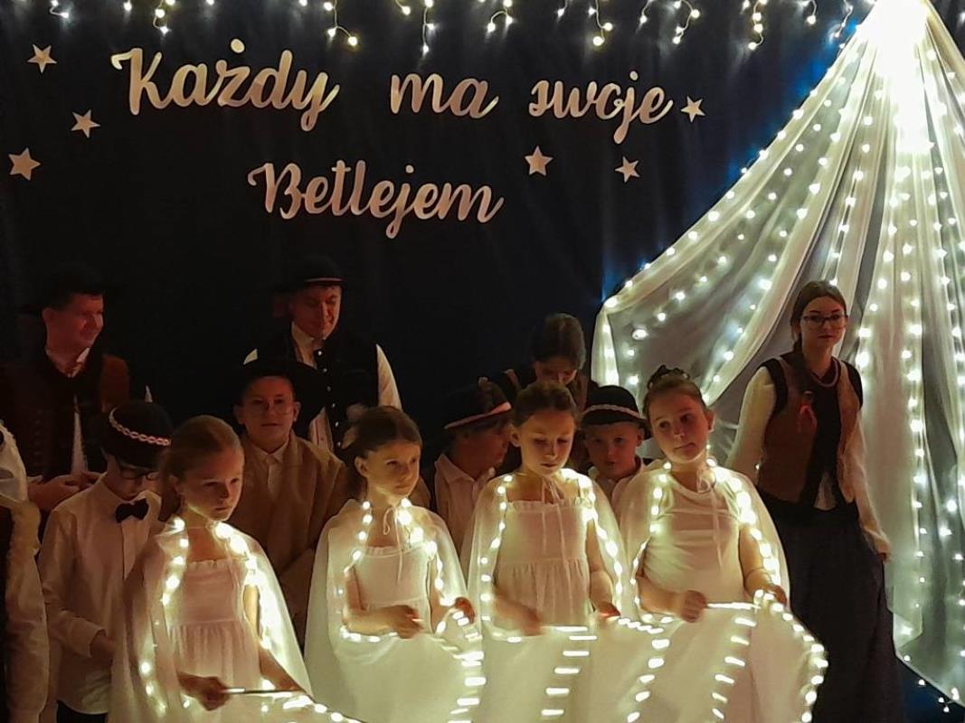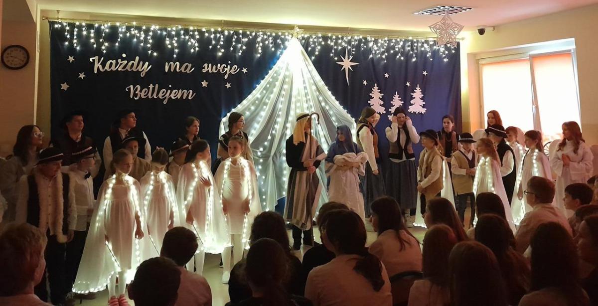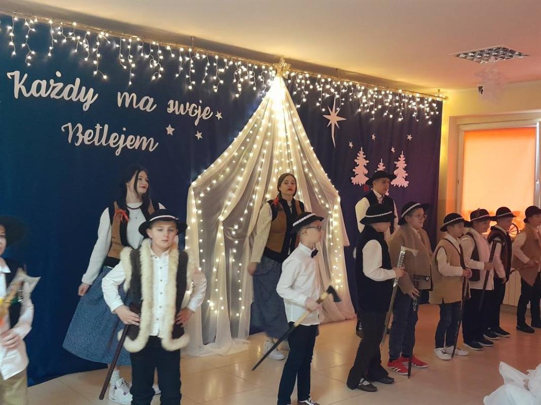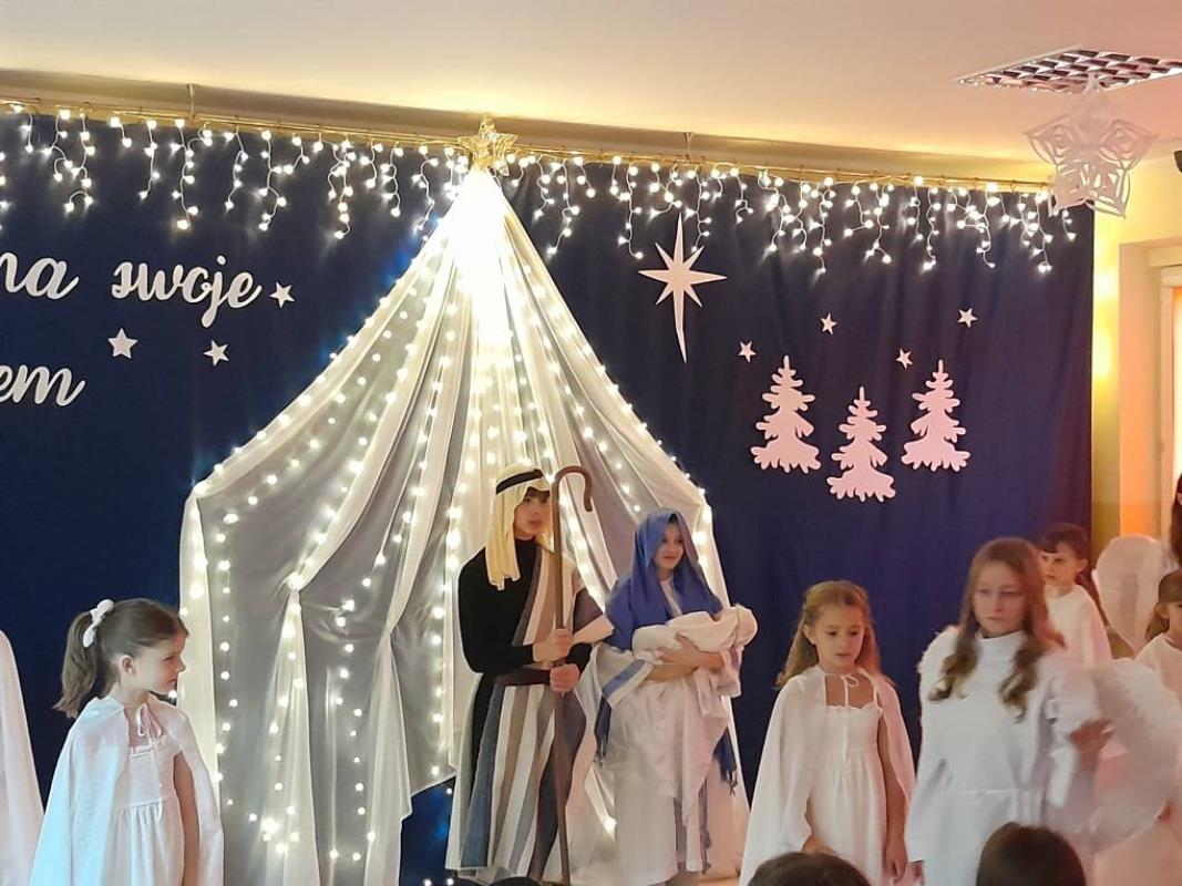Drukuj Powrót do poprzedniej strony Świąteczne Jasełka. 30.12.2025 11:37 Treść Świąteczne Jasełka. W dniu 17.12.2025 r. uczniowie naszej szkoły przedstawili Świąteczne Jasełka. Następnie uczniowie udali się do klas aby uczestniczyć w klasowych wigiliach